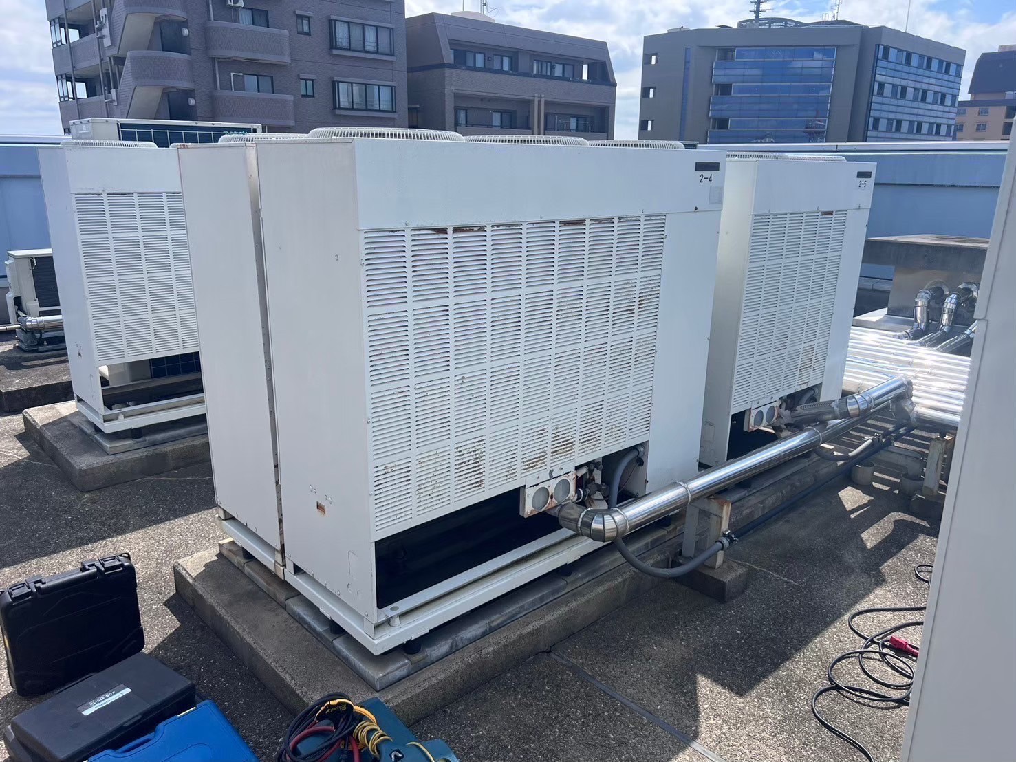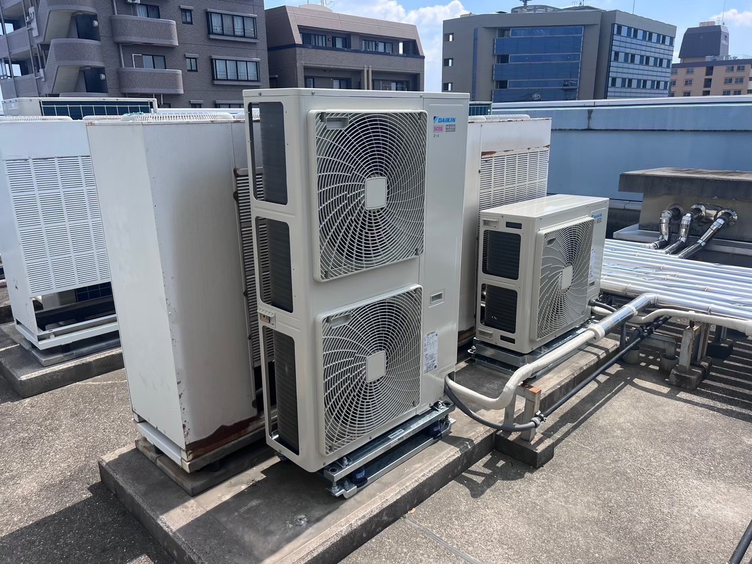 都内オフィスビル様よりエアコンが経年により不具合を起こしてきた為、業務用エアコン更新工事、ルームエアコン新設工事のご依頼を承りました。
